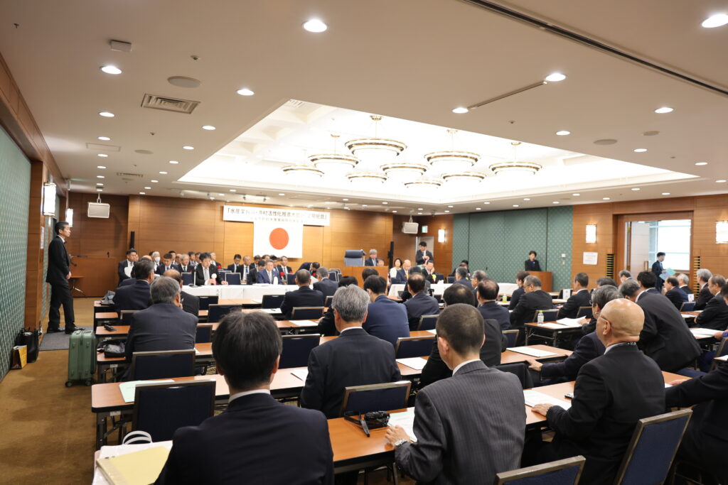 令和7年11月20日、全国町村会館ホールにおいて「水産業振興・漁村活性化推進大会・定期総会」を開催し、来賓や会員等、約120名の出席があった。