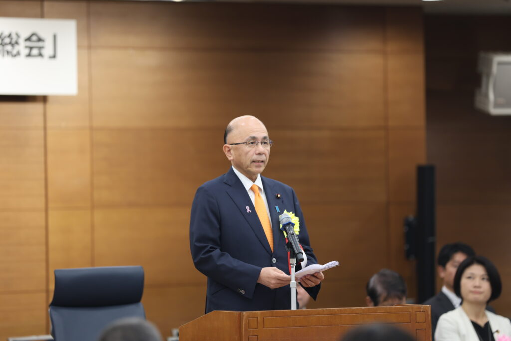 髙橋昌幸会長(北海道神恵内村長)の挨拶の後、来賓としてご臨席いただいた、根本幸典農林水産副大臣、藤井比早之衆議院農林水産委員長、高瀨美和子大日本水産会専務理事に祝辞を頂いた。