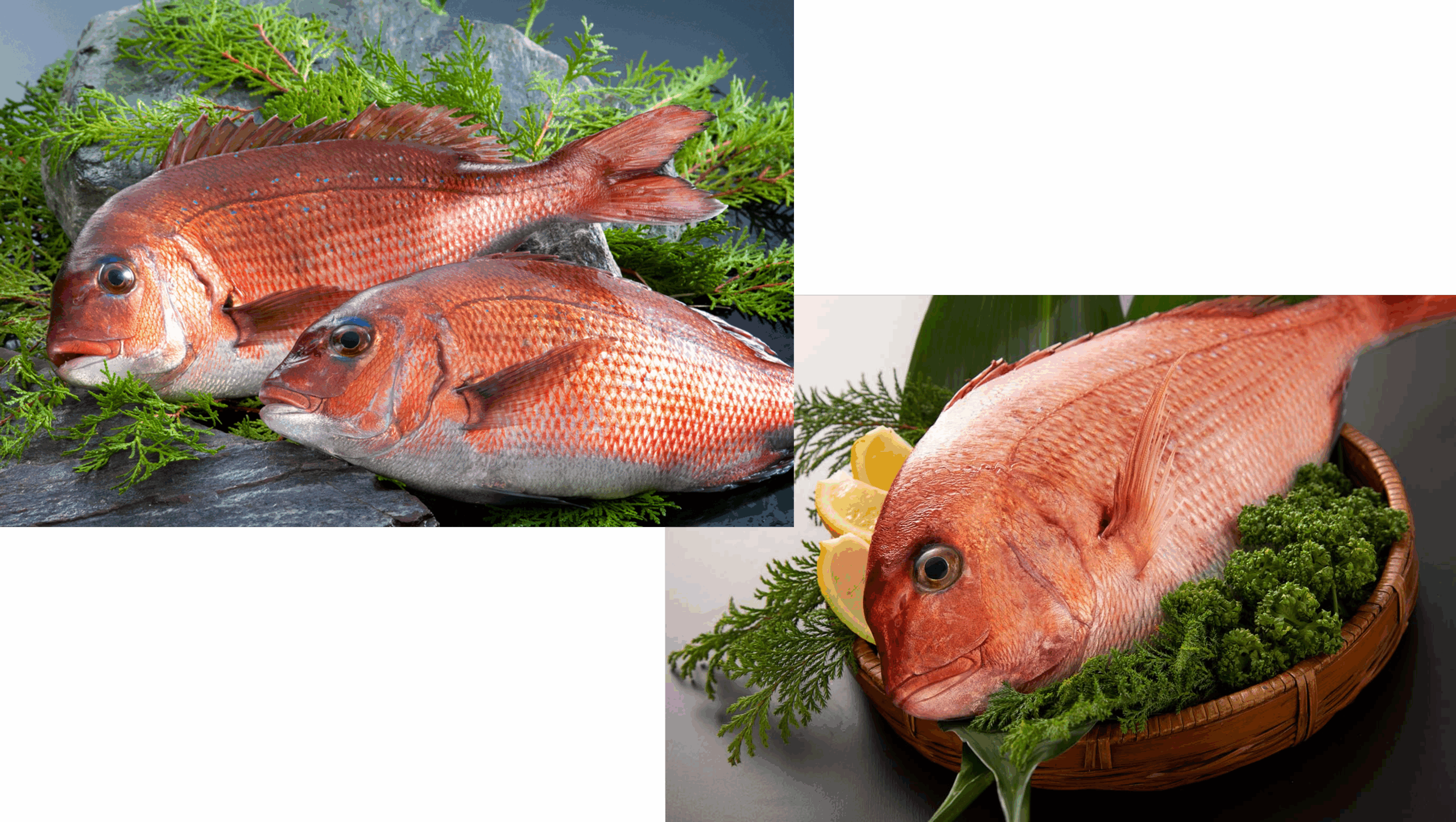 「伊勢マダイ」「お炭付き鯛」「あなたに逢い鯛。」をはじめ、餌や養殖方法などバラエティーに富んだ様々な養殖タイが養殖されています。