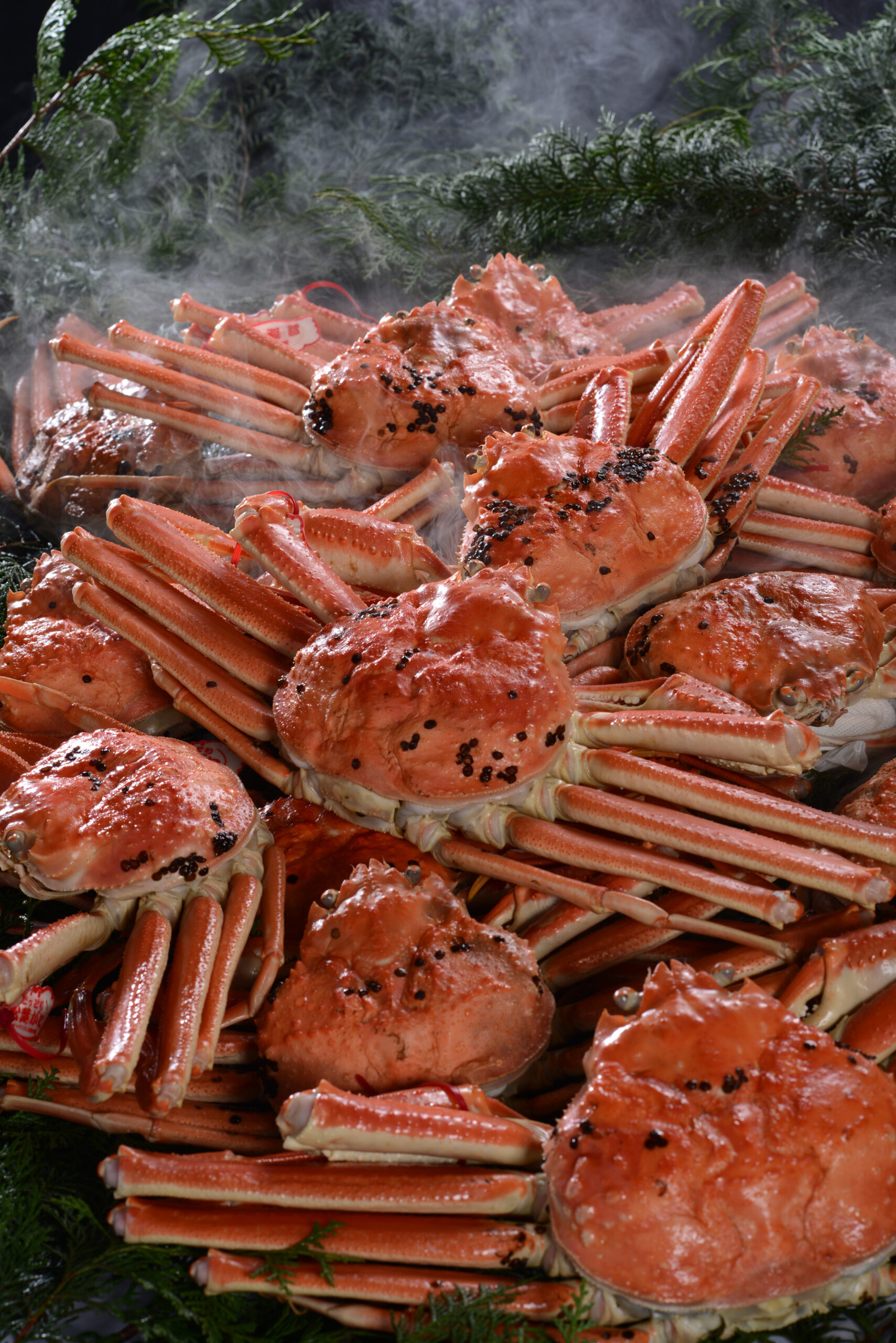 山陰沖の冬の荒れた漁場で、90トン前後の漁船を使った沖合底引き網により漁獲されます。 しっかりと身の詰まった「松葉がに」は、冬の味覚の王者とされ、茹で・焼き・かに刺しなど、どんな料理でも美味しい最高級のカニです。