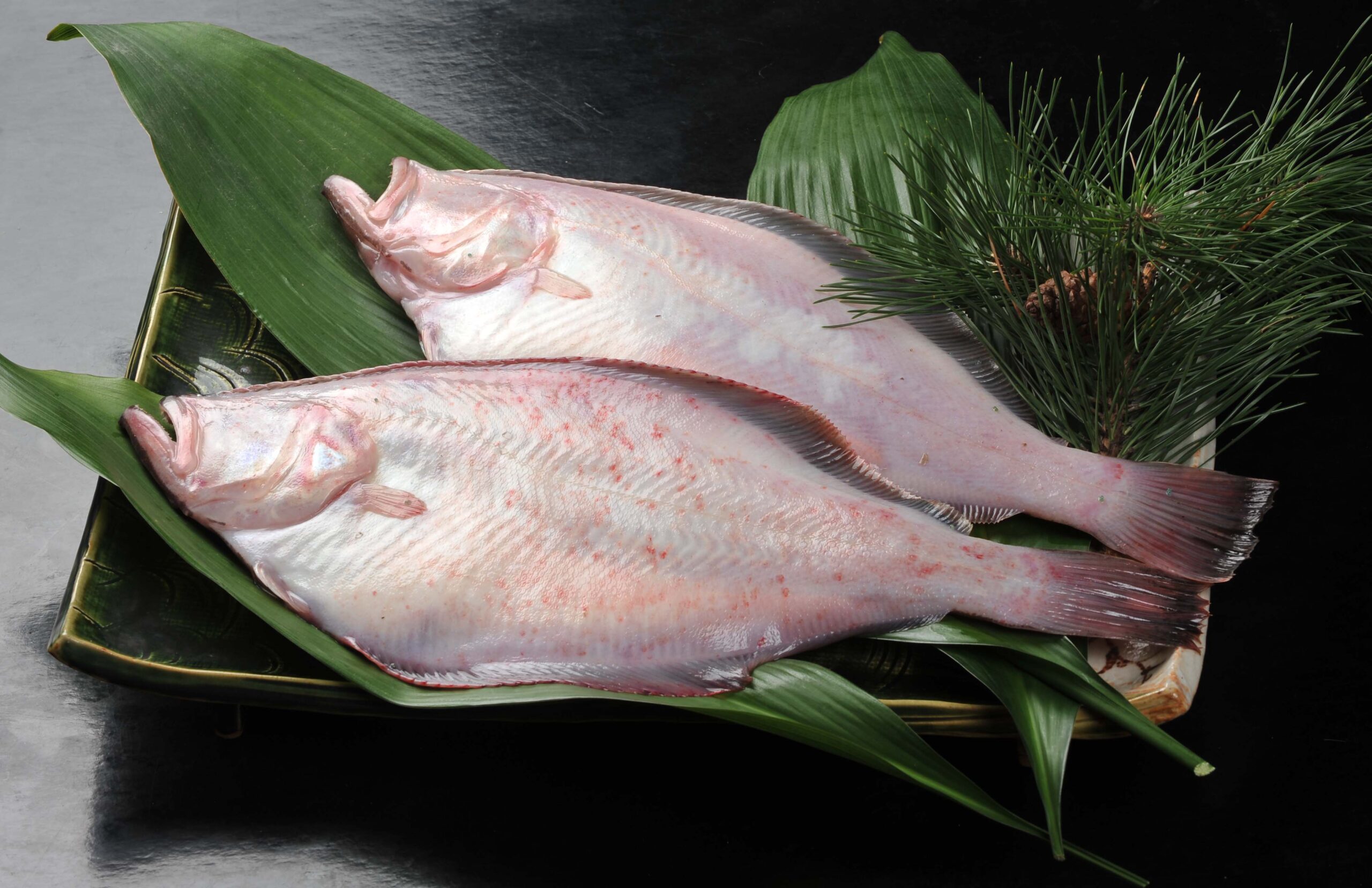 「赤がれい」は、体調45㎝前後にもなり、体色が赤みがかっています。身が厚く、特に冬季には大きな卵を持つため、地元では古くから煮つけや刺身に卵をまぶした「刺身の子まぶり」料理が親しまれています。 網代漁港では、水揚げ前24時間以内に漁獲された新鮮で脂ののった子持ちガレイは「あじろがれい」として高く評価されています。