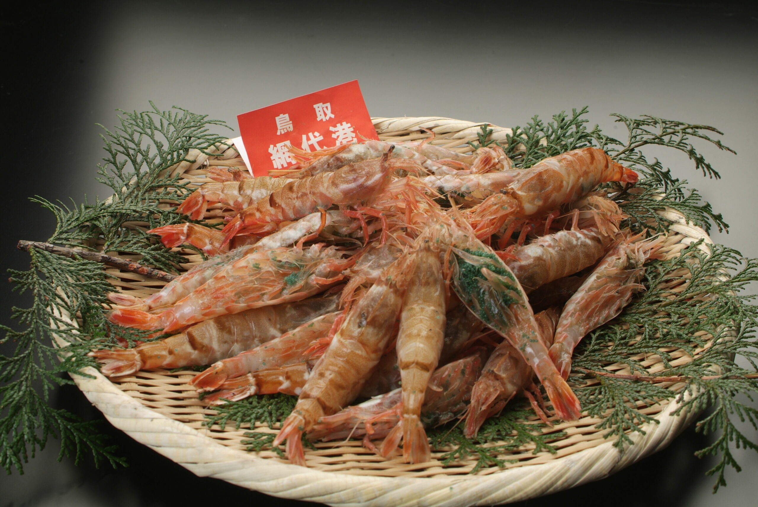 「もさエビ」は、松葉がにと同じ水深200m~250mに生息し、9月から越年して5月までに期間、沖合底びき網により漁獲されます。特に3月から5月は海水温が低いため、鮮度が抜群で桜色をし、卵を腹一杯に抱えています。 刺身・茹で・焼き・天ぷらなど、どんな料理でも美味しい最高級のエビです。